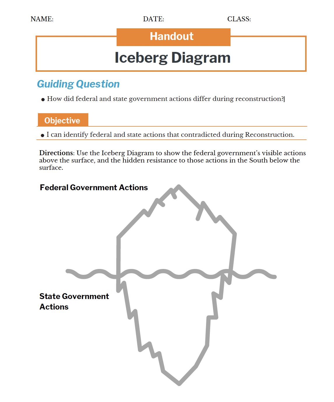 Use this diagram to discuss the federal government’s visible actions and the hidden resistance to those actions in the South.