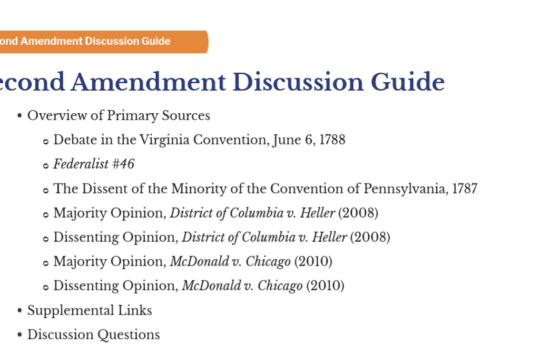 - Explores the origins of the Second Amendment and the right to bear arms; also explores relevant Supreme Court decisions and engages students in the current debate over gun regulation