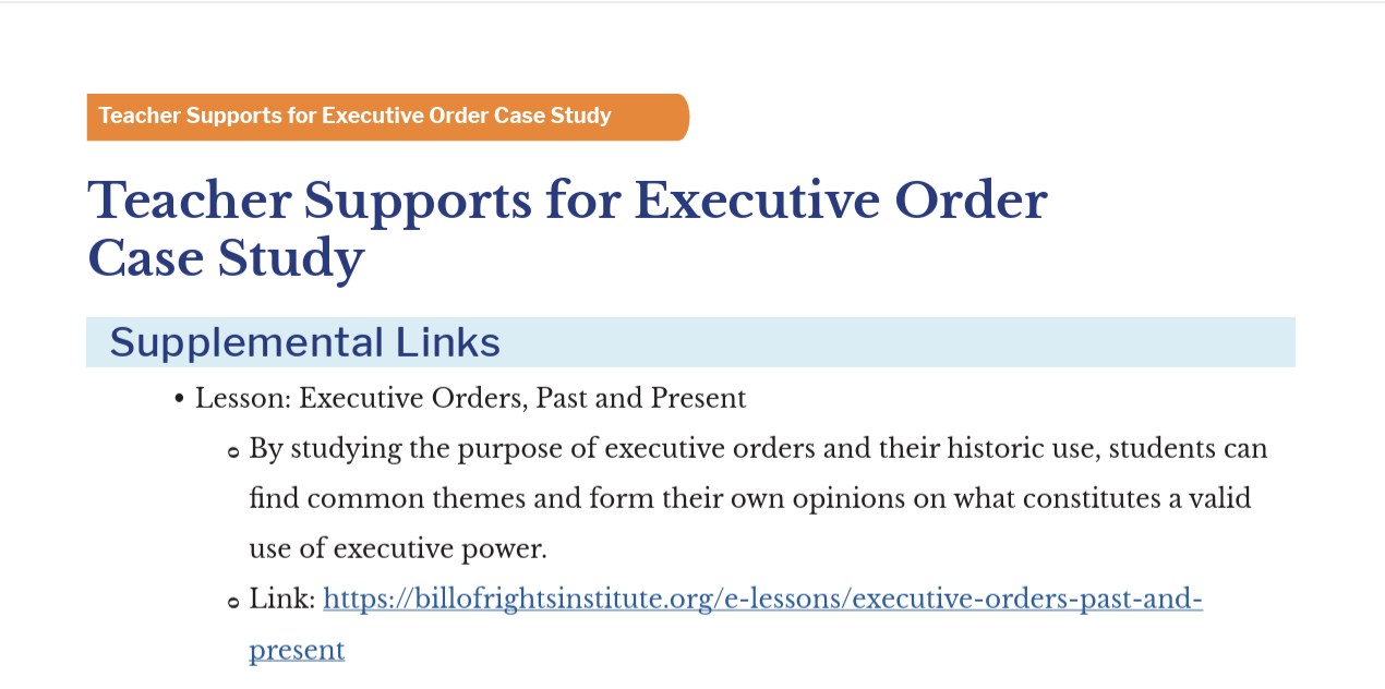 By studying the purpose of executive orders and their historic use, students can find common themes and form their own opinions on what constitutes a valid use of executive power.