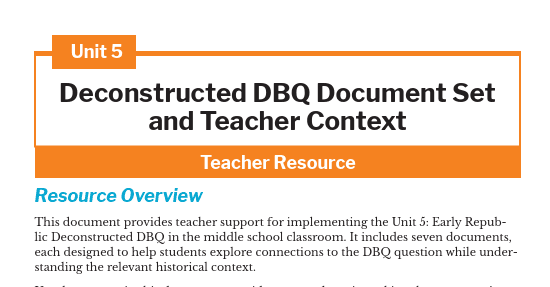 This document is designed to help teachers support and assess students as they complete the unit’s deconstructed DBQ organizer. It breaks down each section of the organizer and provides model responses and examples to guide instruction.