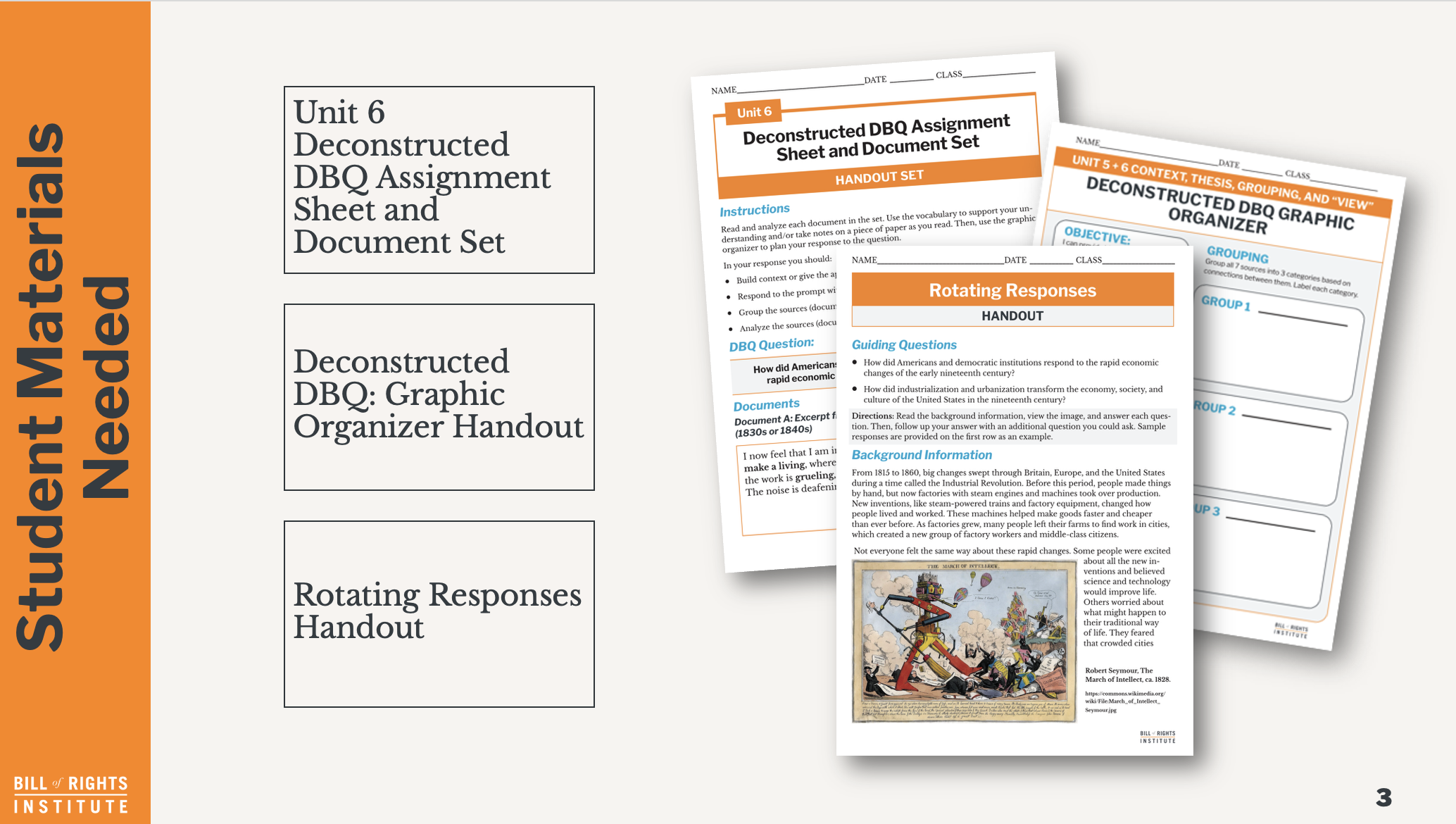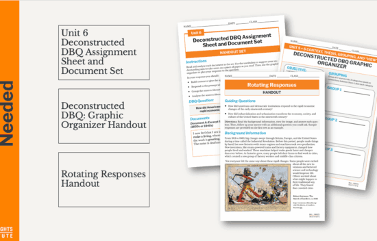 Page:Resources LibraryArrow iconCurriculum:Building a Self-Governing People: Civics & US History for Middle SchoolArrow iconUnit:Unit 6: America in Transition (1815-1860)Arrow iconLesson:Unit 6: America in Transition Deconstructed DBQUnit 6: Context, Thesis, Grouping Sources, and Document Analysis Slide Deck