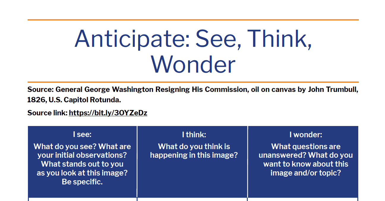 Source: General George Washington Resigning His Commission, oil on canvas by John Trumbull, 1826, U.S. Capitol Rotunda.