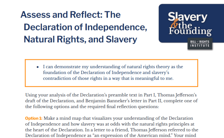 - I can demonstrate my understanding of natural rights theory as the foundation of the Declaration of Independence and slavery’s contradiction of those rights in a way that is meaningful to me.