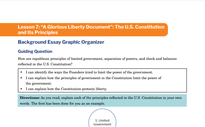 Guiding Question: How are republican principles of limited government, separation of powers, and checks and balances reflected in the U.S. Constitution?
