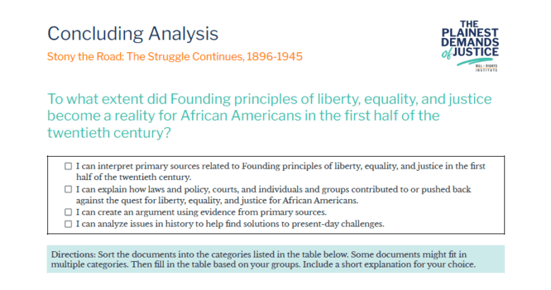 - I can explain how laws and policy, courts, and individuals and groups contributed to or pushed back against the quest for liberty, equality, and justice for African Americans.