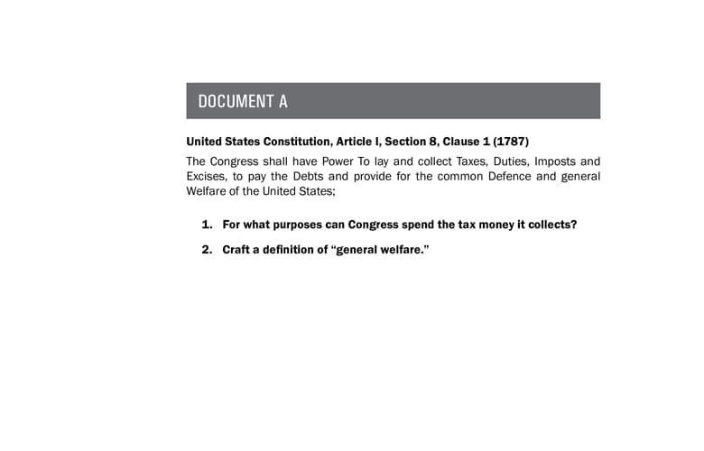 The Congress shall have Power To lay and collect Taxes, Duties, Imposts and Excises, to pay the Debts and provide for the common Defence and general Welfare of the United States;