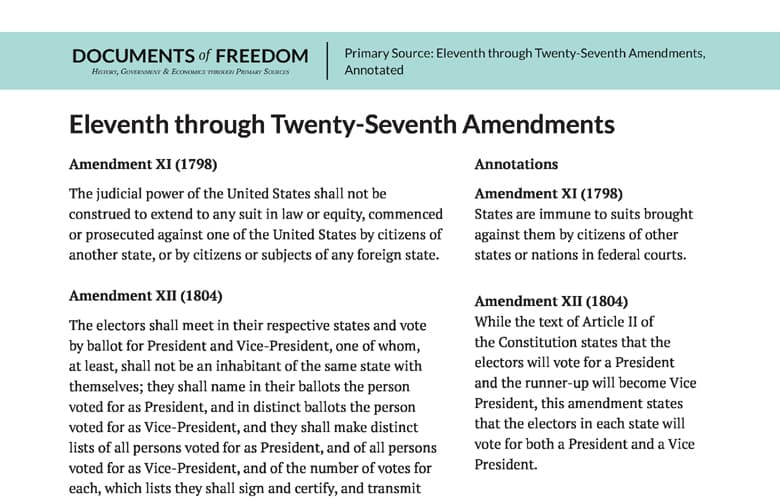 2While the text of Article II of the Constitution states that the electors will vote for a President and the runner-up will become Vice President, this amendment states that the electors in each state will vote for both a President and a Vice President.