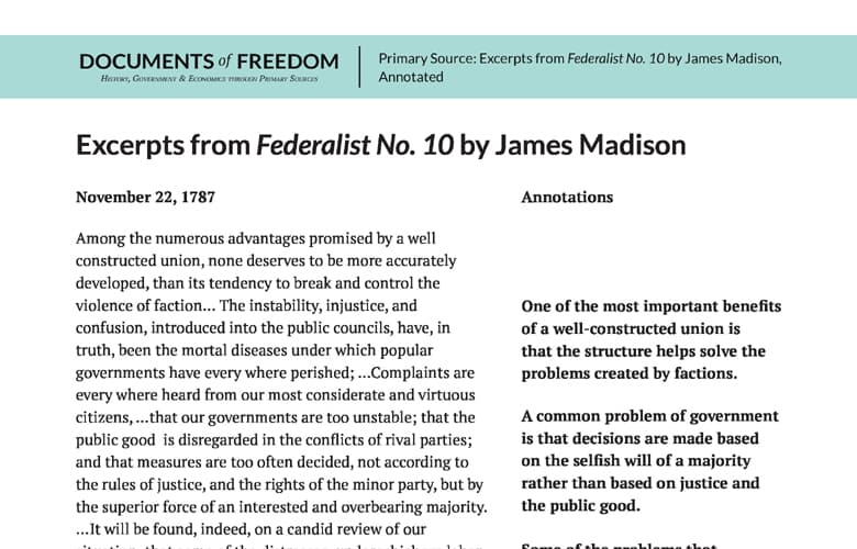 Primary Source: Federalist No. 10 Excerpts Annotated