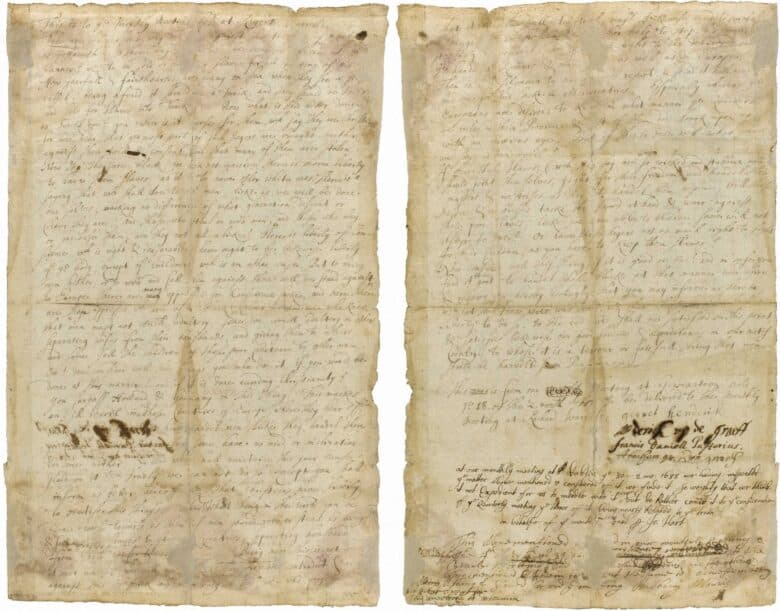| This is from our meeting at Germantown, held the 18 of the 2 month, 1688, to be delivered to the Monthly Meeting at Richard Worrel’s. . . . | |