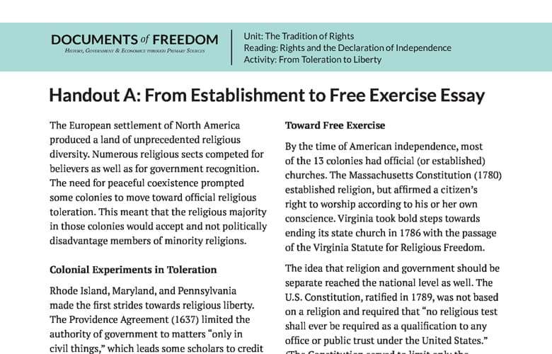 Handout A: From Establishment to Free Exercise Essay