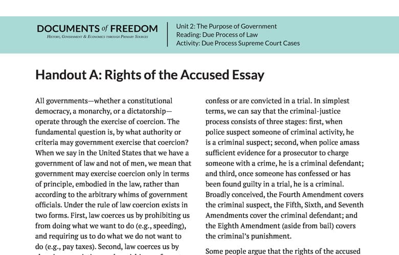 Some people argue that the rights of the accused are mere technicalities, but one could argue that it is those very “technicalities”—especially the protection against unreasonable searches and seizures in the Fourth Amendment, at issue in Mapp v. Ohio (1961), the privilege against self-incrimination (as well as the guarantee of due process) in the Fifth Amendment, at issue in Miranda v. Arizona (1966), and the right to counsel in the Sixth Amendment, at issue in Gideon v. Wainwright (1963)—that distinguish a constitutional democracy from an authoritarian, tyrannical, or totalitarian political system. You may be familiar with a phrase out of the old American West: “Give him a fair trial and then hang him.” Sometimes used today as well, this phrase suggests that we know someone’s guilt prior to a trial, but under the law it is only through an elaborate set of procedures that we are authorized to determine one’s guilt or innocence. Under the presumption of innocence, the rights of the accused are the foundation of those procedures.