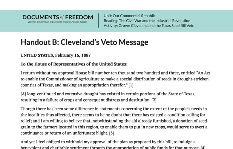 Handout B: Cleveland’s Veto Message