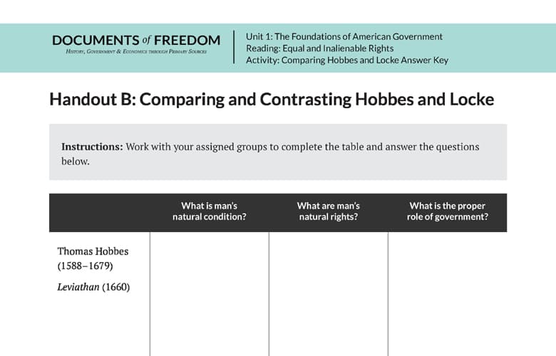 Handout B: Comparing and Contrasting Hobbes and Locke