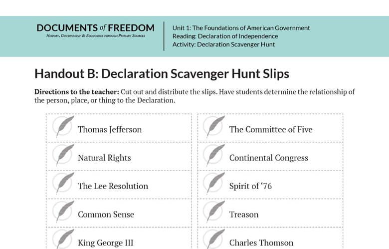 Handout B: Declaration Scavenger Hunt Slips