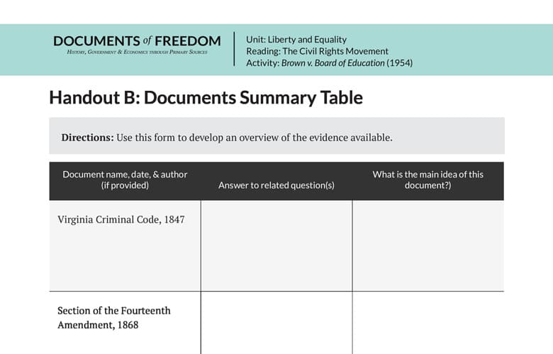 Handout B: Document Summary Table (The Civil Rights Movement)