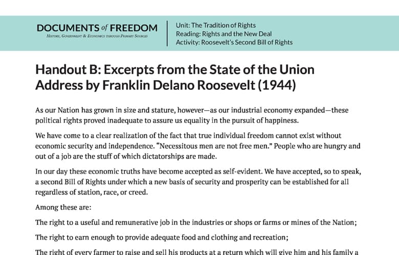 Handout B: Excerpts from the State of the Union Address by Franklin Delano Roosevelt (1944)