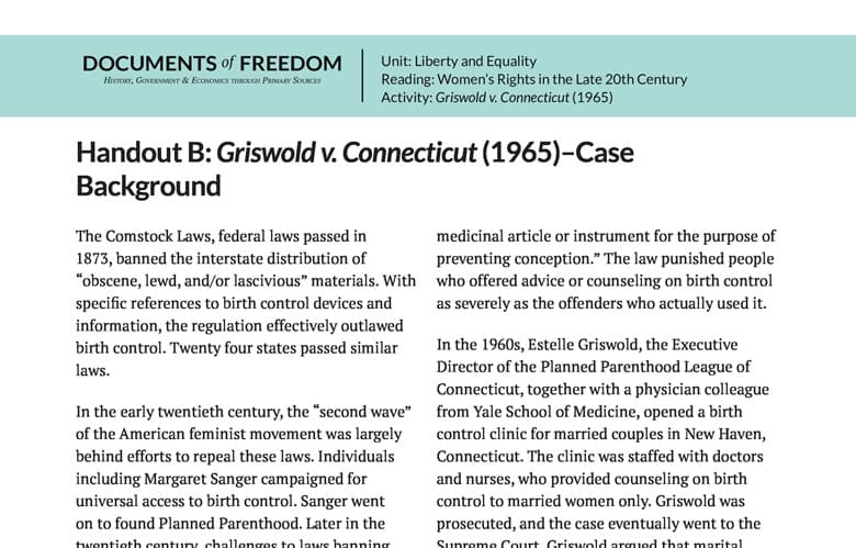Handout B: Griswold v. Connecticut (1965)–Case Background