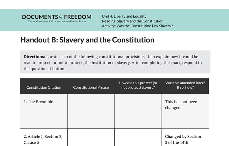 Handout B: Slavery and the Constitution