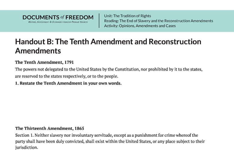Handout B: The Tenth Amendment and Reconstruction Amendments