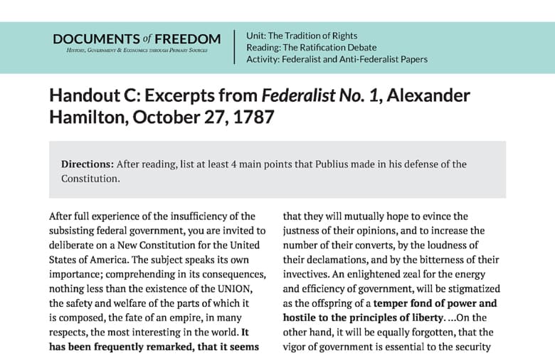 Primary Source: Excerpts from Federalist No. 1