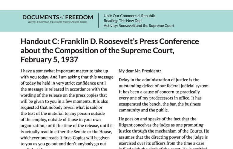 Handout C: Franklin D. Roosevelt’s Press Conference about the Composition of the Supreme Court, February 5, 1937