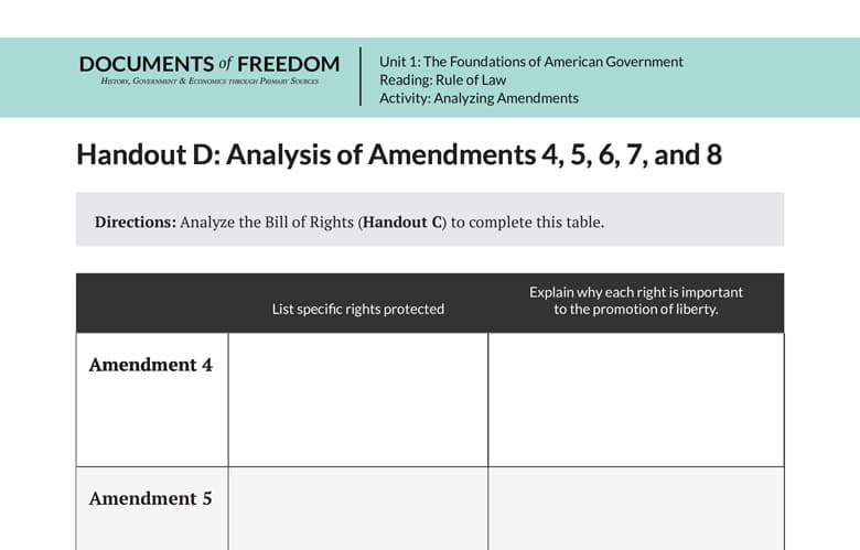 Handout D: Analysis of Amendments 4, 5, 6, 7, and 8