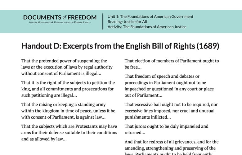 Handout D: Excerpts from the English Bill of Rights (1689)