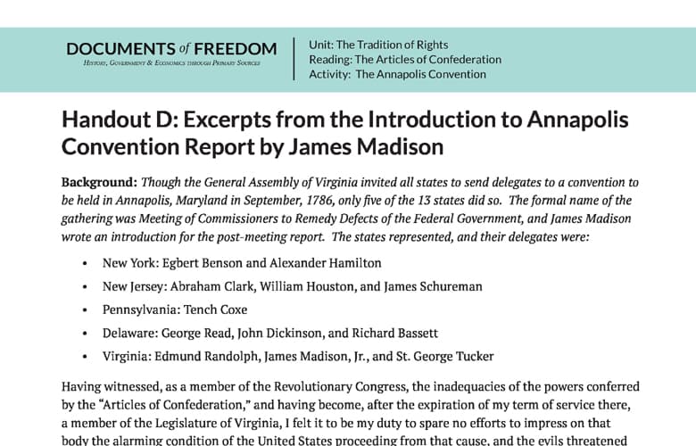 Handout D: Excerpts from the Introduction to Annapolis Convention Report by James Madison
