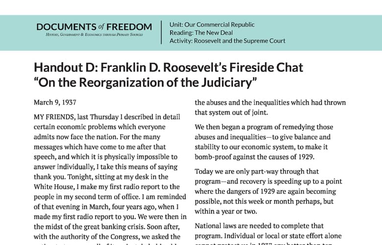 Handout D: Franklin D. Roosevelt’s Fireside Chat “On the Reorganization of the Judiciary”
