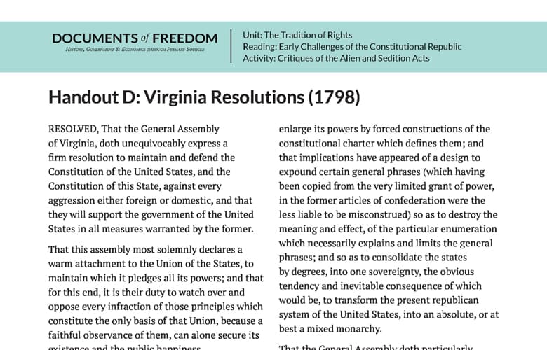 - What is the Virginia Resolutions’ concluding statement about the validity of the Alien and Sedition Acts? Who is making this declaration?