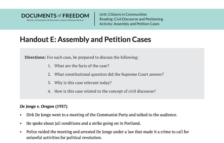 Handout E: Assembly and Petition Cases