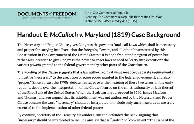 Handout E: McCulloch v. Maryland (1819) Case Background