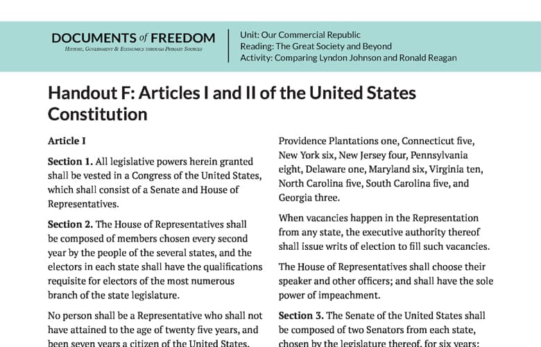 Handout F: Articles I and II of the United States Constitution