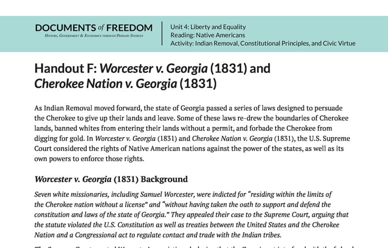 Handout F: Worcester v. Georgia (1831) and Cherokee Nation v. Georgia (1831)