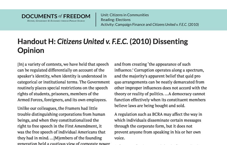 Handout H: Citizens United v. F.E.C. (2010) Dissenting Opinion