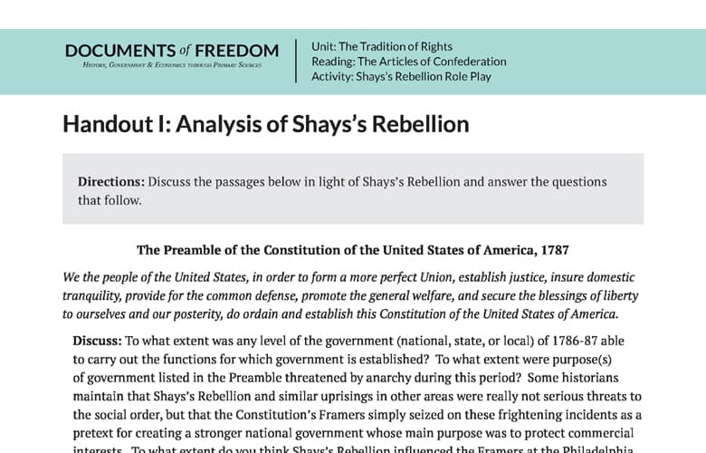 Directions: Discuss the passages below in light of Shays’s Rebellion and answer the questions that follow.