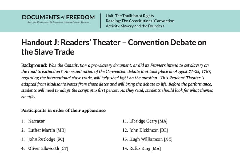 Handout J: Readers’ Theater – Convention Debate on the Slave Trade