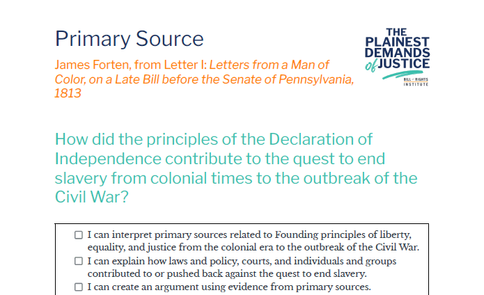 James Forten, from Letter I: Letters from a Man of Color, on a Late Bill before the Senate of Pennsylvania, 1813