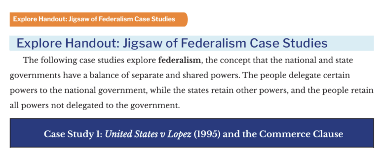 Explore Handout: Jigsaw of Federalism Case Studies