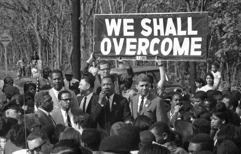 “We Shall Overcome” is believed to have its origin in the gospel song, “I’ll Overcome Someday” by African American minister and composer Charles Tindley. The song was popularized in the 1960s by folk singers and activists Pete Seeger and Joan Baez and became the unofficial anthem of the civil rights movement. Martin Luther King Jr. spoke of the song in March 1968, just days before his assassination: