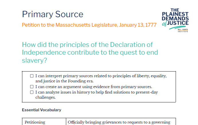 - What does this request illustrate about Founding principles of liberty in equality and justice as understood by African Americans in the Founding era? How were these ideas turned into action?