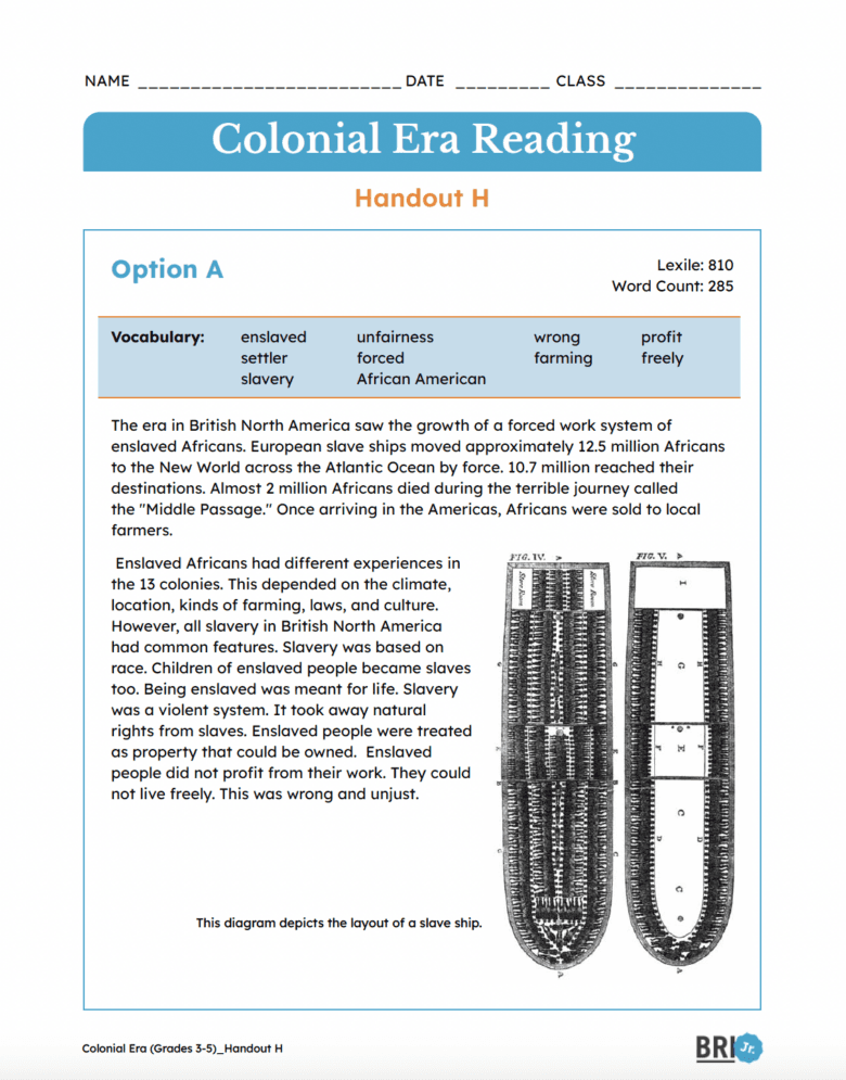 Vocabulary: enslaved, unfairness, wrong, profit, settler, forced, farming, freely, slavery, African American