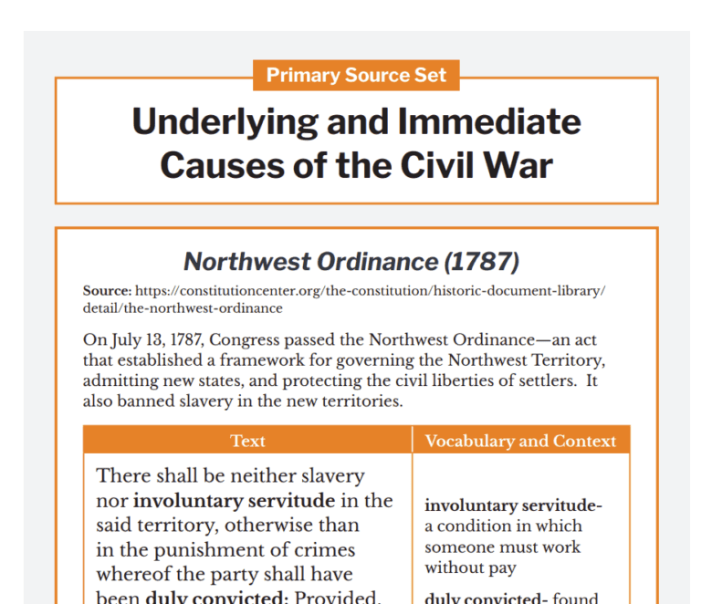 Underlying and Immediate Causes of the Civil War Primary Source Set