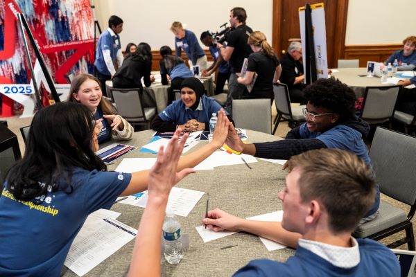 <p>BRI also designed the team challenge, which has finalists work in groups to solve a civic challenge as part of the contest. Students were also put to the test with the final challenge questions, which BRI staff developed and assisted in judging. Emily Brubaker, the 2024 winner of the National Civics Bee, also served as a judge.</p>
