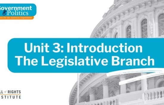 This video ties into Unit 3 of the Bill of Rights Institute's Government and Politics: Civics for the American Experiment curriculum. Explore the role of the legislature, the constitutional responsibilities of the House and Senate, and the Supreme Court cases that define representation and redistricting.