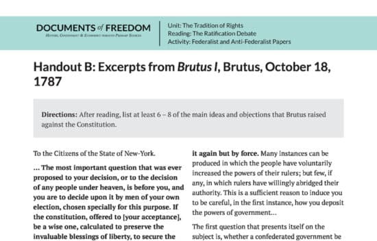 Use this lesson with The Ratification Debate on the Constitution Narrative and the Were the Anti-Federalists Unduly Suspicious or Insightful Political Thinkers? Point-Counterpoint to have students analyze the debate between Federalists and Anti-Federalists.