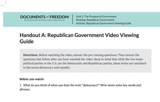 Do you understand the key differences between a Republic and a Democracy? The Bill of Rights Institute has created a short, engaging video for Constitution Day on the constitutional principle of representative government. Exciting visuals from current events, an engaging historical narrative, brief scholar interviews, familiar music, and memorable quotes will make this 5-minute video perfect for use on Constitution Day, and every day!