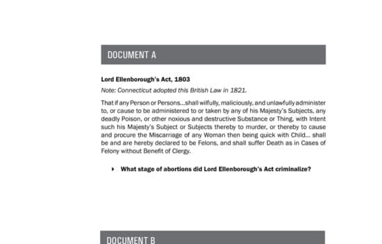 This month, we spotlight the landmark case Roe v. Wade (1973). In this case, the Court held that the right to privacy included the abortion decision, and that states could not ban the procedure in the first trimester. One of the Court’s most controversial decisions, the ruling overturned laws banning abortion in at least thirty-one states. Resources Roe v. Wade, The Oyez Project Activity According to common law tradition carried over in the United States from England, abortion before “quickening,” (or when the fetus’s movements could be felt) was not a crime.